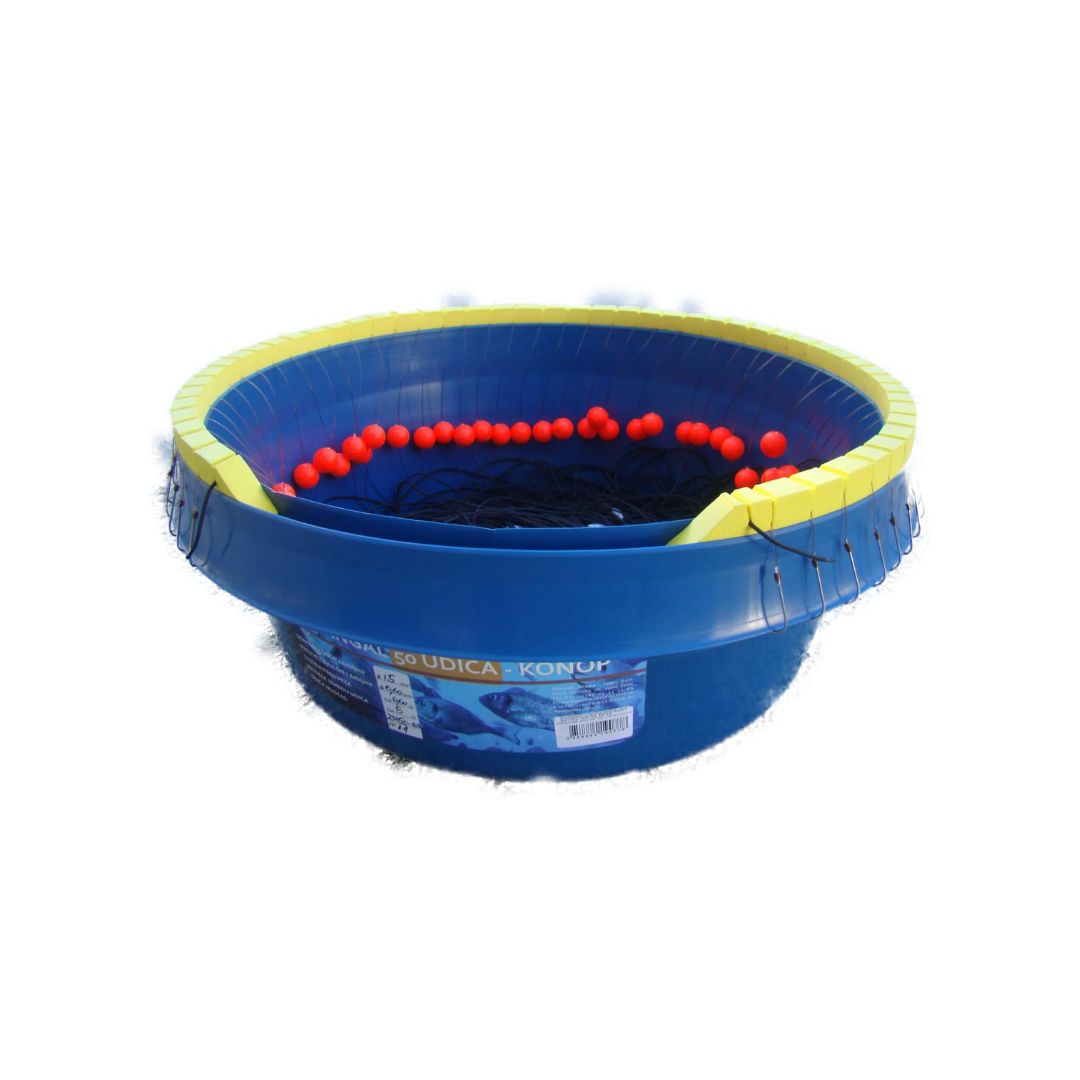 - Sastoji se od duge osnove koja je izrađena od konopa – sintetičke pletenice promjena 1,5mm na koju se hvataju predvezi s udicama